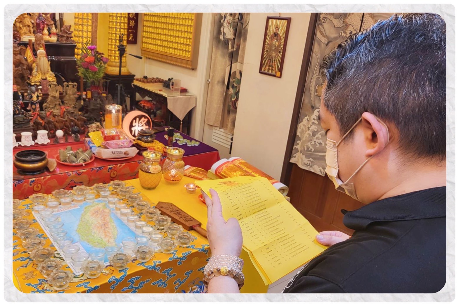 聖元師父於辛丑年五月初五日填寫疏文上呈神尊,所有利益功德同享,迴向給自己、家人、親友、以及台灣這塊土地與上面的所有人。