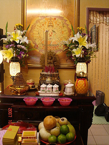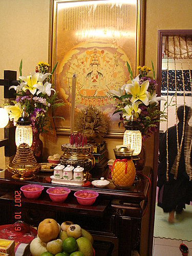 以前,對許多事情的發生與變化,我的心態始終都是隨緣,順其自然,靜觀棋變的。修行亦然,所以,雖然當初這樣的神桌擺設(現在可以理解為何當初有些人會覺得像怪怪的神壇了?)很是簡陋,但是當局者迷,我其實沒有太大的不妥感受。我一直以為,敬神拜神在於心,外在的很多東西可以省略(當然現在不是這麼想了,因為有形就有相,能量的影響還是很重要的。那時候,如果一開始有足夠的經濟能力,我應該也會用更好的規模來供佛)。