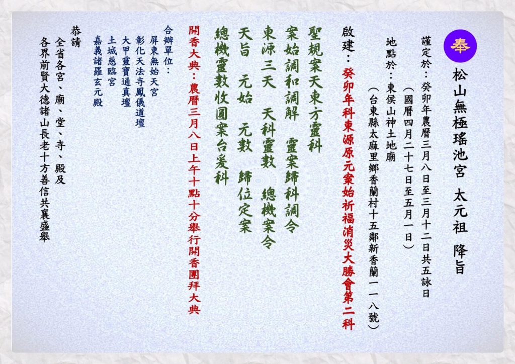 ✅112.04.29~05.01癸卯年科東源原元案始祈福消災大勝會第二科🔻(已圓滿)