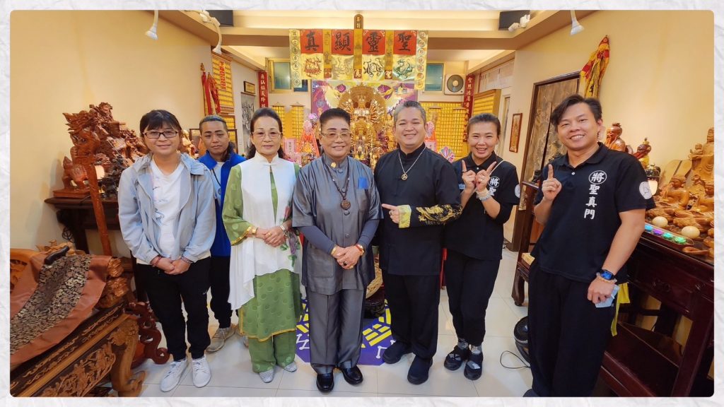 從千手觀音的圖畫正式建立修行道場,成為專職的象棋占卜師。即將滿一年的時候,恭迎來了正式的八寸八千手觀音佛像,然後滿三週年之後,迎接來了一尺六的千手觀音。一直到今年,聖真門即將滿十七週年的前夕,恭迎來了現在全身高達三尺九頗大尊的千手觀音佛像。