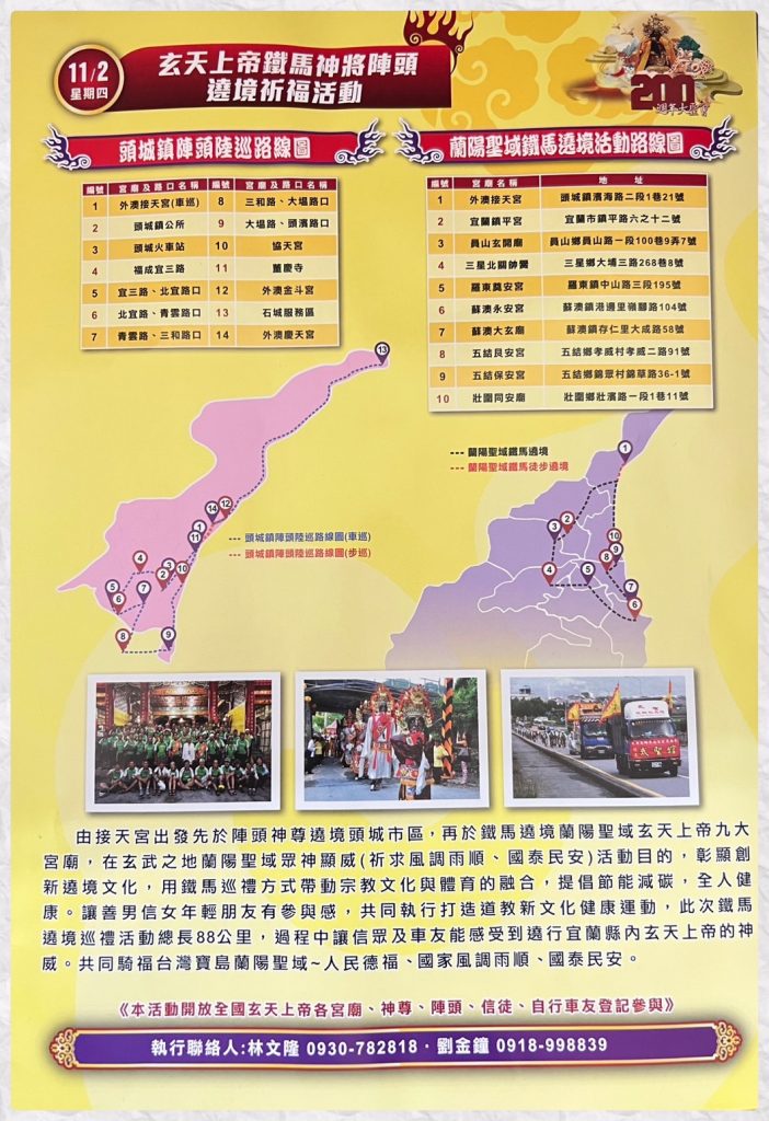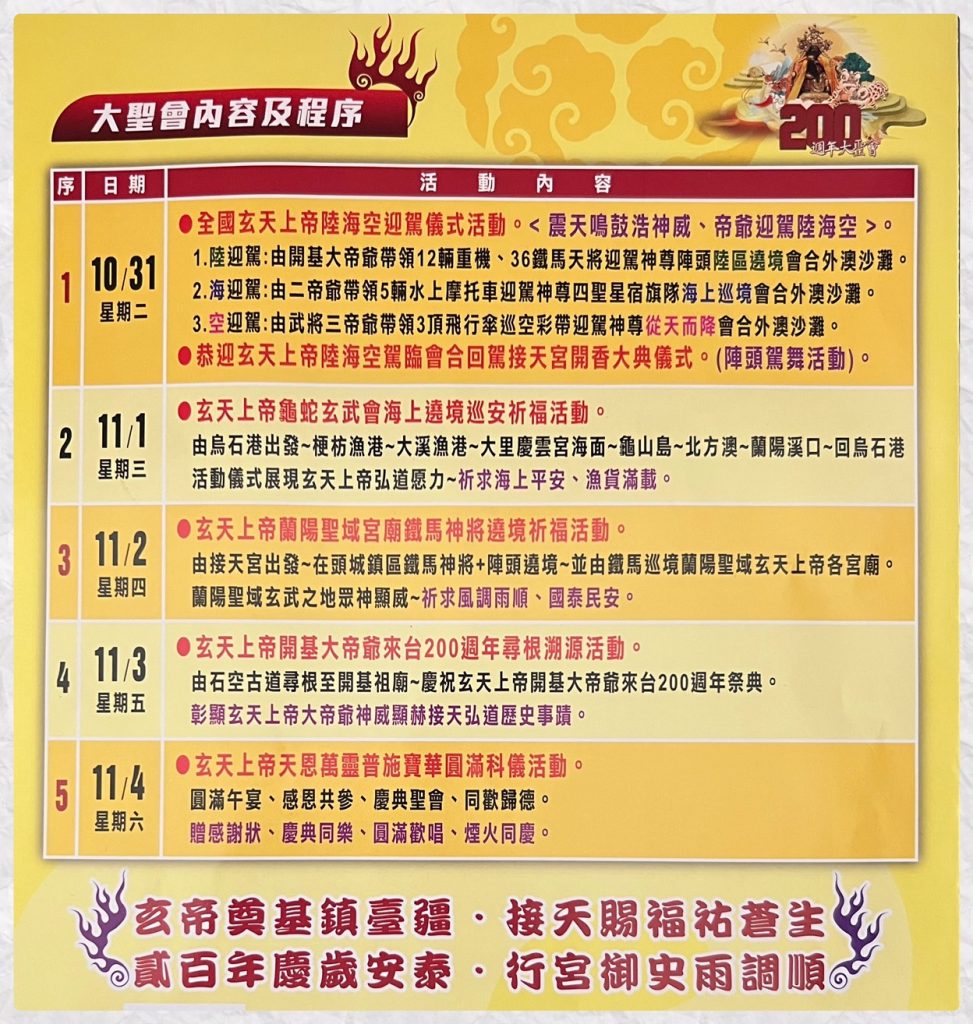 聖真門聖務|2023.11.02外澳接天宮玄天上帝開基大帝爺來台200週年慶典大聖會(已圓滿) 2023-10-302023-11-12 ruby6777 (主打)熱門推薦與好康 外澳接天宮玄天上帝開基大帝爺來台200週年慶典大聖會 2023.11.02『玄天上帝蘭陽聖域宮廟鐵馬神將繞境祈福活動』 ☆ 感謝善信踴躍支持,活動得以圓滿完成 ☆ 📖 聖務圓滿紀錄 📖 ⛩ 活動內容 聖真門今年已陸續參與多場 閻羅天子平衡陰陽救度冤屈出巡聖務,深深感謝各界朋友們的支持與贊助。 其中一場聖務是我們前往外澳接天宮的活動。當時,得知接天宮即將舉辦『外澳接天宮玄天上帝開基大帝爺來台200週年慶典大聖會』。因為聖真門也供奉玄天上帝,聖元師父作為神明的代言人和執事人員,深切體會到神佛的慈悲。因此,我們毫不畏懼辛勞,全力支持此次活動。 聖真門將參加11/2場次的活動,當天將舉行『玄天上帝蘭陽聖域宮廟鐵馬神將繞境祈福活動』,參與聖務的目的為祈求風調雨順,國泰民安,一切平安吉祥,並與大眾廣結善緣。 此次活動我們將祈請聖真門玄天上帝一同出巡,出巡的神轎也由聖真門的弟子學生們發心來製作,誠摯歡迎各方善信大德踴躍捐獻聖務功德,一起成就聖務大道。 ✨ 凡贊助聖務功德者皆會造冊填稟疏文,有功獎賞,求財得財,求利得利,求感情得感情,求健康得健康,所求皆遂,一切吉祥如意。 🙏希望大家踴躍支持,一起成就聖務大道。 💐贊助方式 📍請加入聖真門官方帳號,提供給我們您欲捐獻的金額與個人資訊,個人資訊僅供此次填稟疏文使用,不會有其他用途,請放心填寫。 🎏 捐款方式 (1) 歡迎到聖真門捐款 (2) ATM轉帳 台新銀行 代號(812) 中和分行 帳號 : 20201000- 1-55311 ★ 聖真門所有服務、儀式與法會皆為小額消費,邀請大家可多使用轉帳付款功能,節省下來的刷卡手續費,毋須支付給金流公司,方可用於廟務維護及修繕,誠心感謝您的理解與支持。 (3) 線上刷卡 🔻🔻🔻 ATM轉帳或是刷卡付費者,可來電02-28413330或是加入官方帳號 @go924,告知並確認報名。 此活動舉辦歡,相關細節若有不清楚之處,歡迎直接聯繫我們。祝福大家一切平安、自在快樂 ,謝謝大家! 聯絡聖真門 Line@好友:@go924 (2)2841 3330 台北市士林區至善路三段303號 1樓