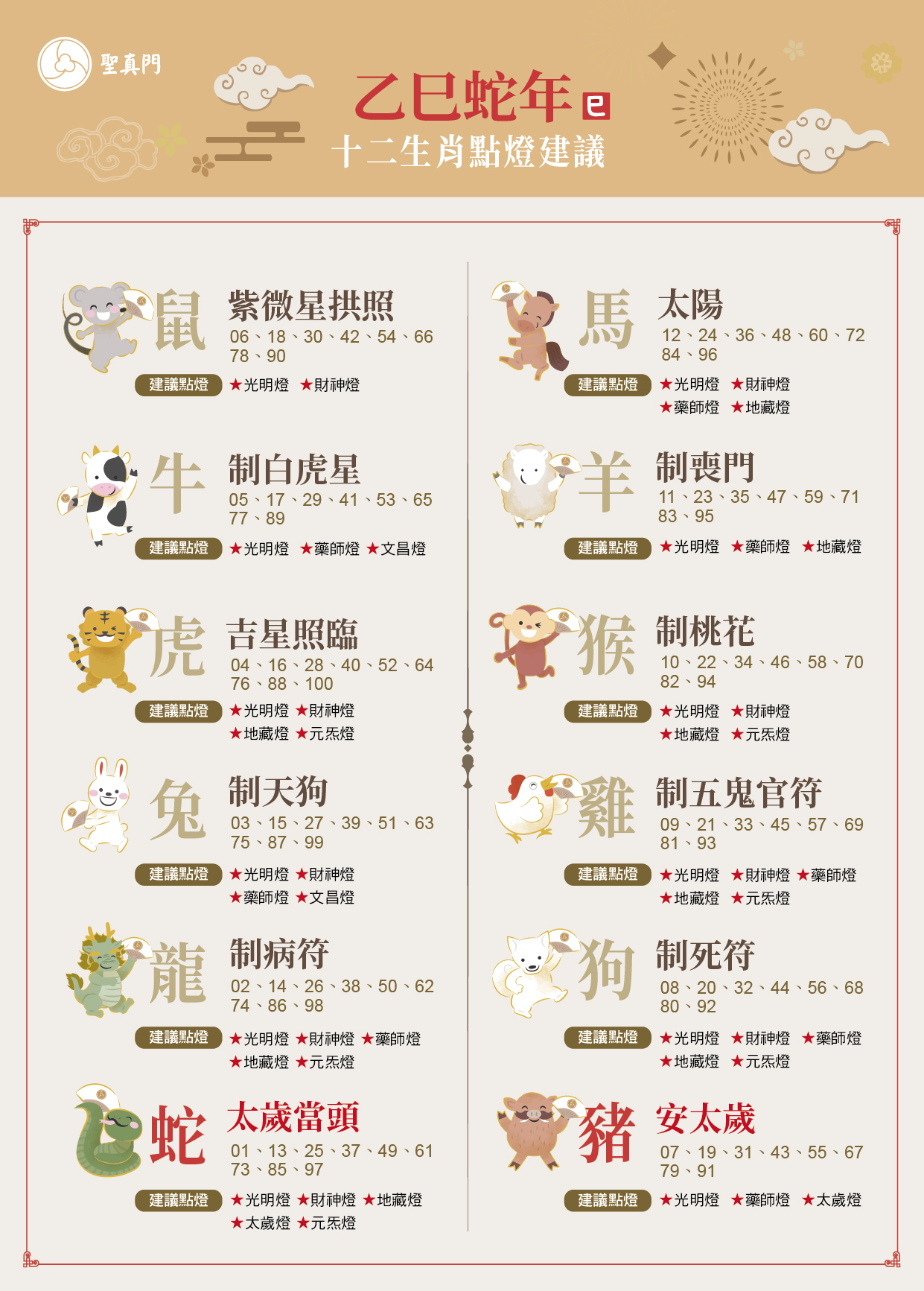 每個生肖都可以點 祈求平安吉祥