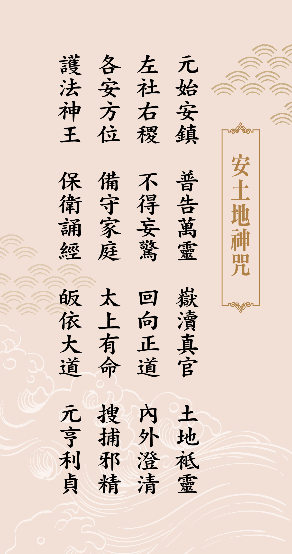 每日至少念誦5遍《安土地神咒》(10遍、20遍亦可,功德無量),在易經卦象中,5代表是中宮也代表土地的意思,我們希望透過咒語的正能量,將功德迴向給台灣這片土地,也回向給每一位參與誦唸的善信朋友,願人心平安、地氣安穩、災難遠離。
