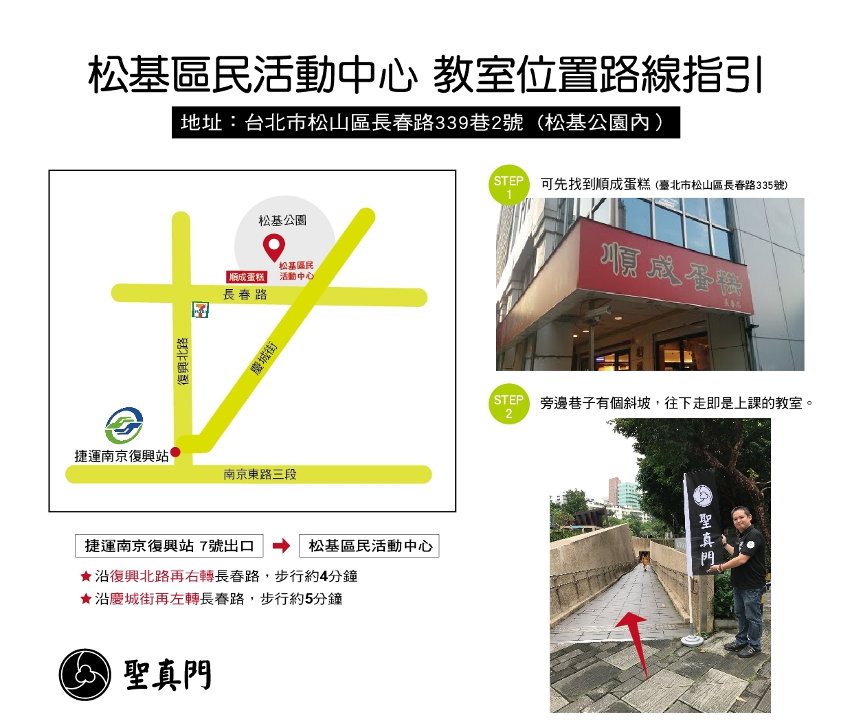伏魔師出沒地,松基區民活動中心(長春路339巷2號) 2017-06-202017-07-30 伏魔師 聖元 (課程)伏魔學苑 從南京復興捷運站七號出口 步行5分鐘 然後看到聖真門的代表旗幟之後,一路通過斜坡走道即到達教室喔! 教室外面也會有旗幟與告示指引說明!