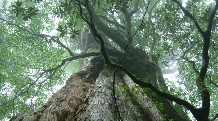這片森林非常的古老裡面沒有人為的造景也沒有任何人造的道路,爬著爬著發現周遭的樹林樹木都非常的大,像是神木般也像是在這兒等待了好幾千年的感覺,這個時候老鷹筆直的往上飛,我不能往上所以只好放慢了腳步,緩緩的走向前面一顆大樹。。。