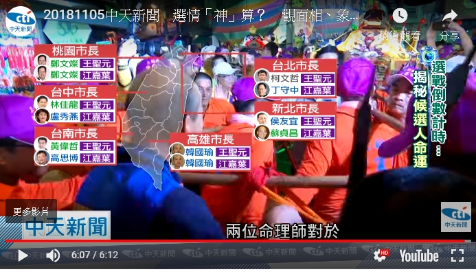 20181105中天新聞 選情「神」算? 觀面相、象棋占卜 6都5翻盤?