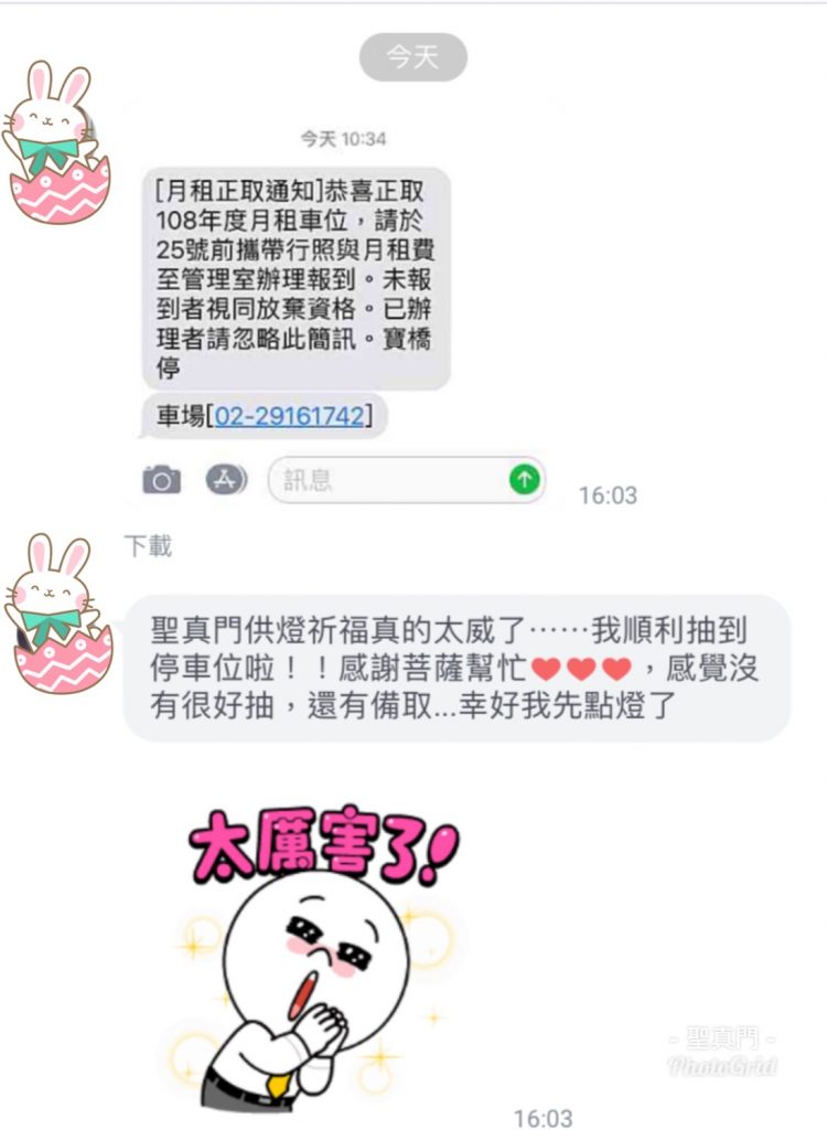 (見證神蹟)客人回饋,祈福供燈,簡單有效的創造好運 聖真門的神太厲害了! 2019-08-302022-02-03 伏魔師 聖元 (見證神蹟)心得回饋, (神威)大顯神威 10000人只錄取165人,幫客人點燈祈求 魁斗星君 ,神明護佑,順利考上,信則有,信則實,當然自己也要努力阿! 點燈祈求公司營運順利 ,果然菩薩是尋聲救苦,有求必應阿!!! 供燈祈求停車位抽籤,果然中籤了!客人開心回饋中籤的喜悅 千手千眼大悲願 尋聲救苦度眾生 一心奉神修心念 祈願觀音千處現 供燈祈福 怎麼做 ? 看這裡 聖真門祈福儀式|★供燈祈安植福 ★可祈求事業順心/旅途平安/諸事順遂/元神光彩