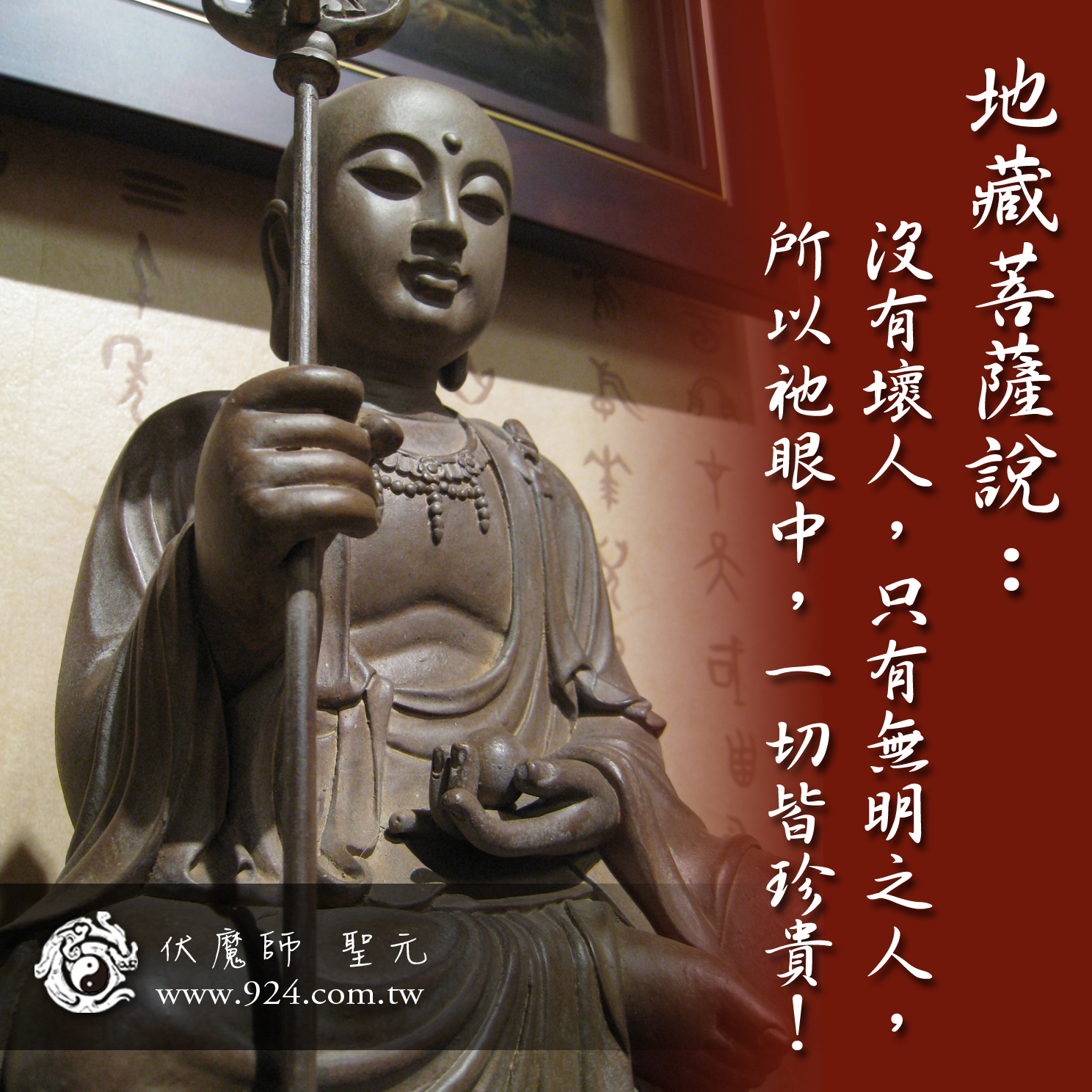 【聖元語錄】12:地藏菩薩說,沒有壞人,只有無明之人,所以祂眼中,一切皆珍貴!!! 2014-04-242018-03-08 ruby6777 (小語)聖元語錄 Leave a comment 【聖元語錄】 因為是人,有人性,有七情六慾,若尚未清淨, 必然易受其苦擾,隨情慾起浮,因為是人, 所以還有不圓滿有需要包容之處! 地藏菩薩說,沒有壞人,只有無明之人,所以祂眼中,一切皆珍貴!!! 但我們勢必要努力當個明白之人,這才是真修行! <伏魔師 聖元> ————————————————— 歡迎大家分享 聖元語錄佈施 靈自在修心苑聖真門 (02)2841-3330 http://www.924.com.tw/