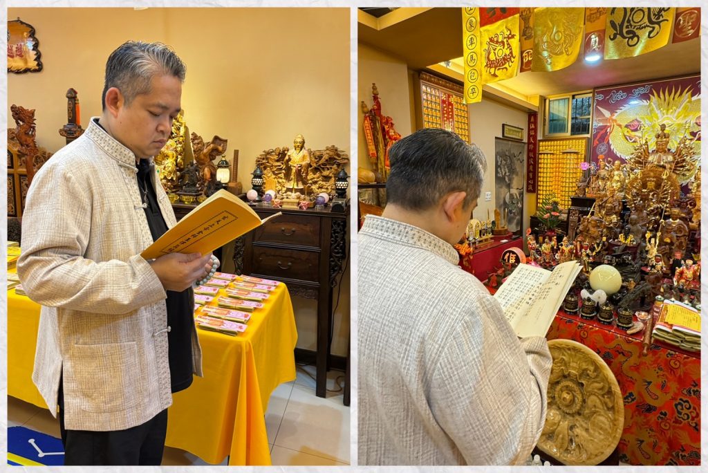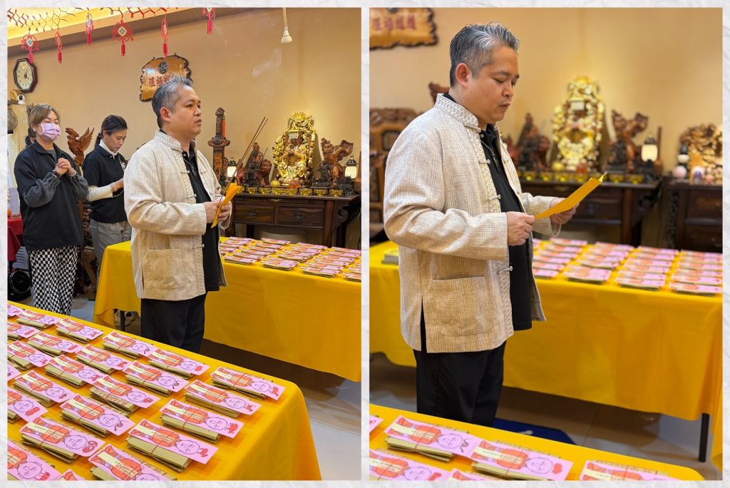 再由聖元師父恭向菩薩祈求護持,協助參加者煞氣遠離,厄運退開。