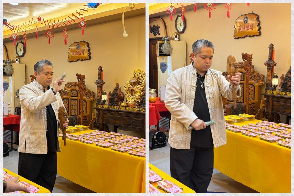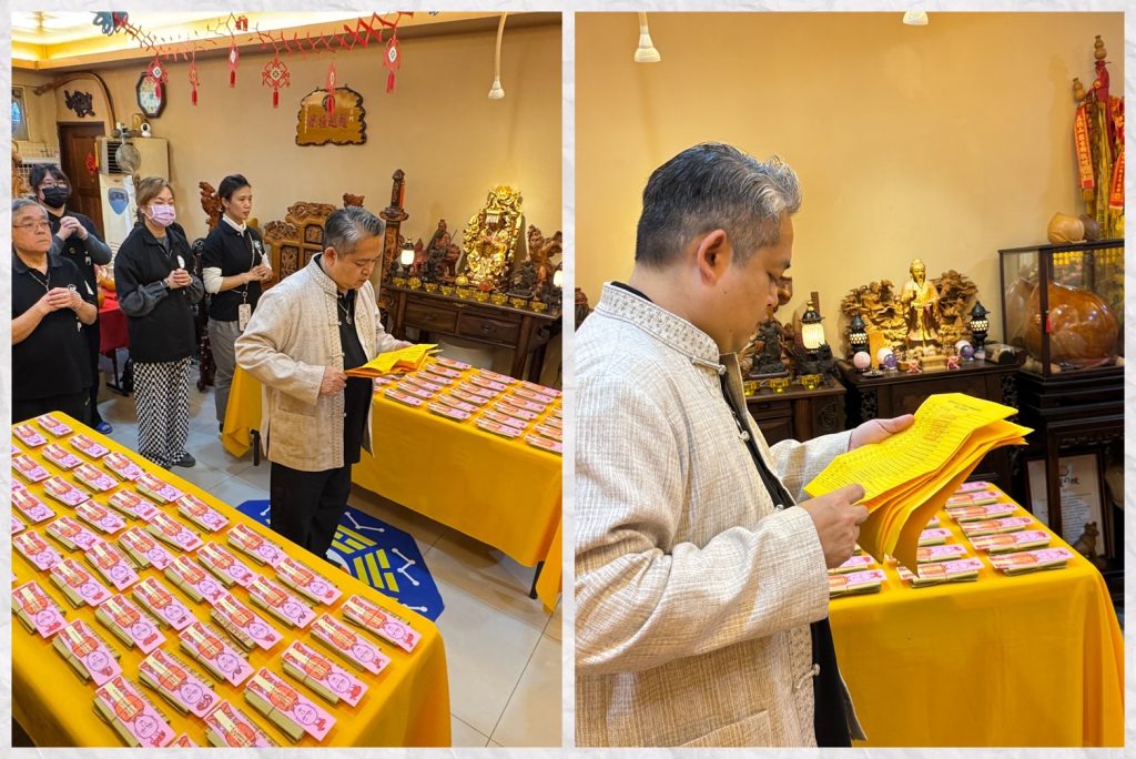 由聖真弟子道玄與道淨祈請菩薩協助,一一來幫各位參加的善信祈福,並且擲杯確認是否圓滿。