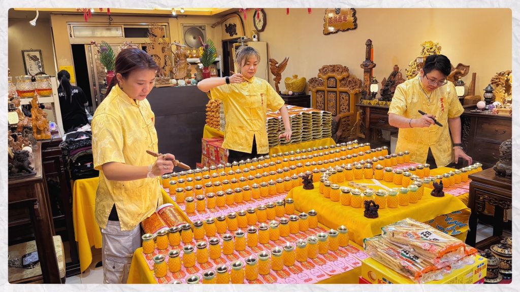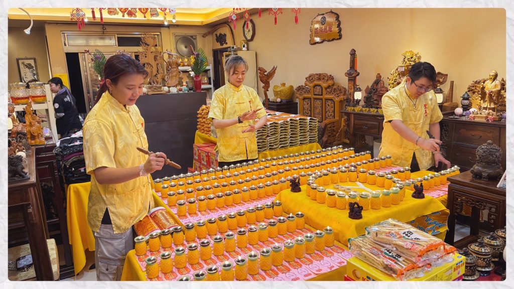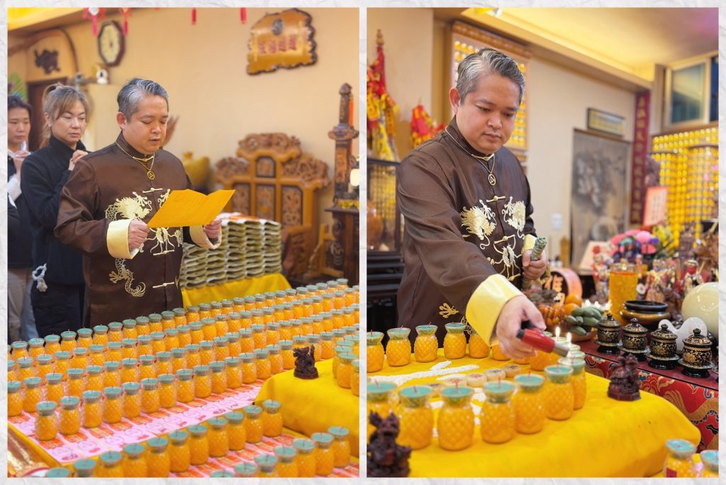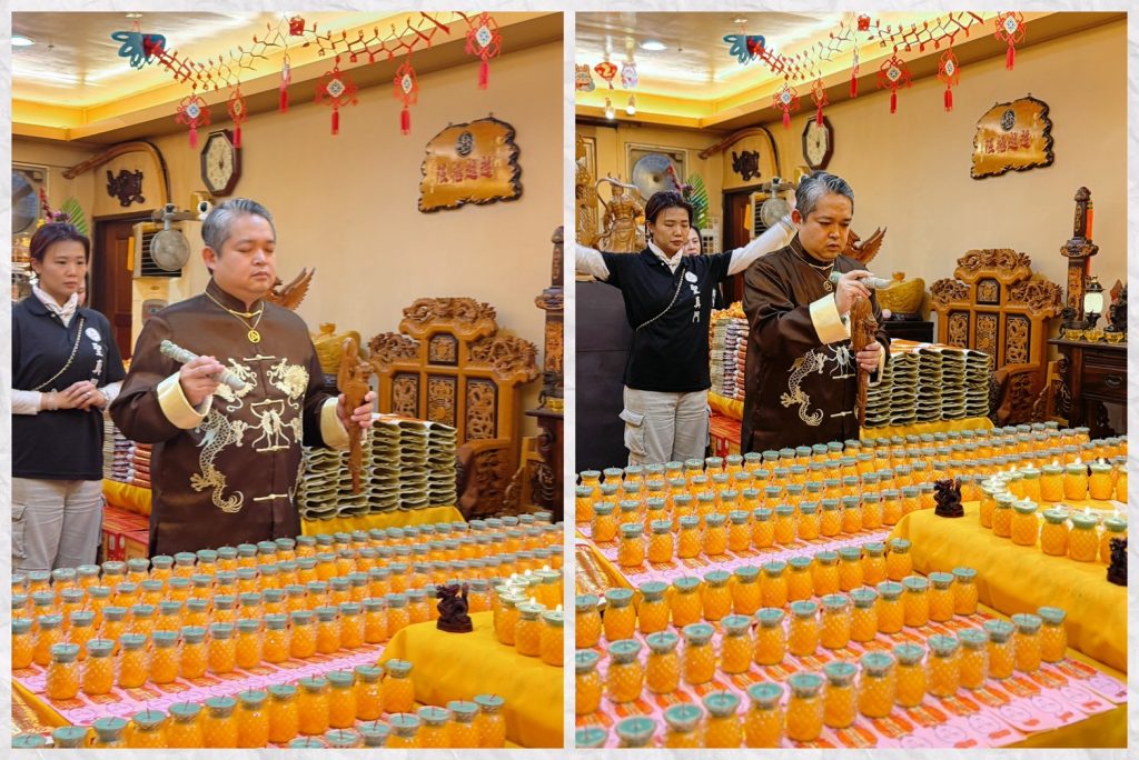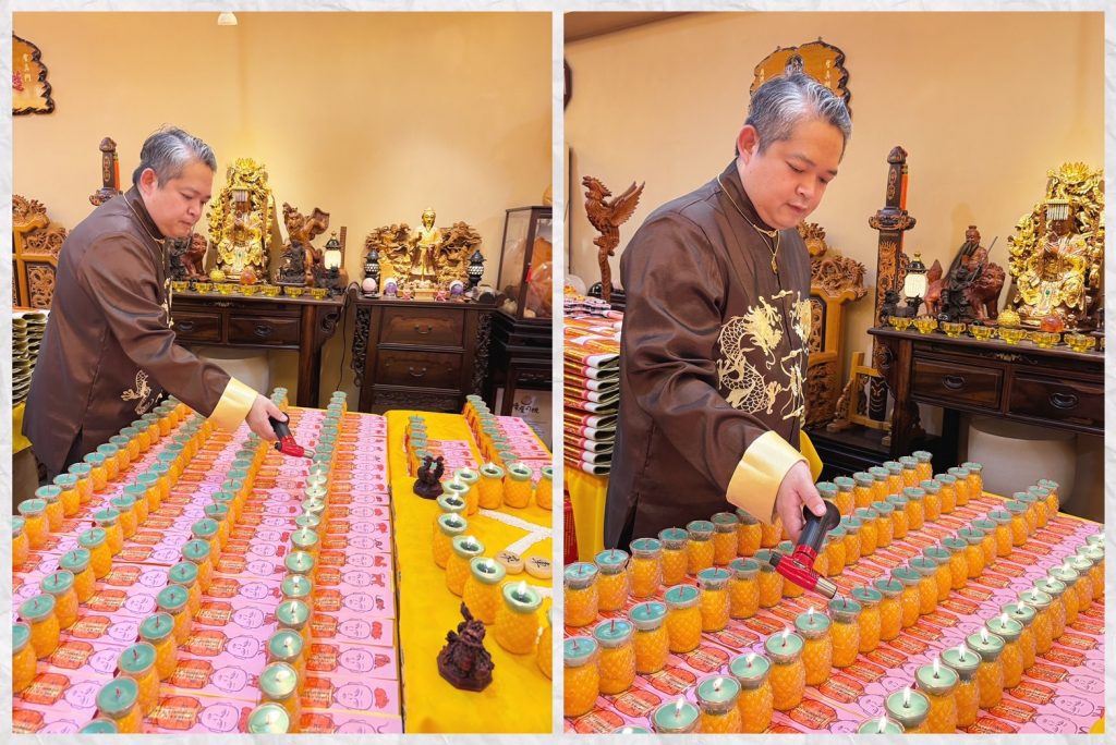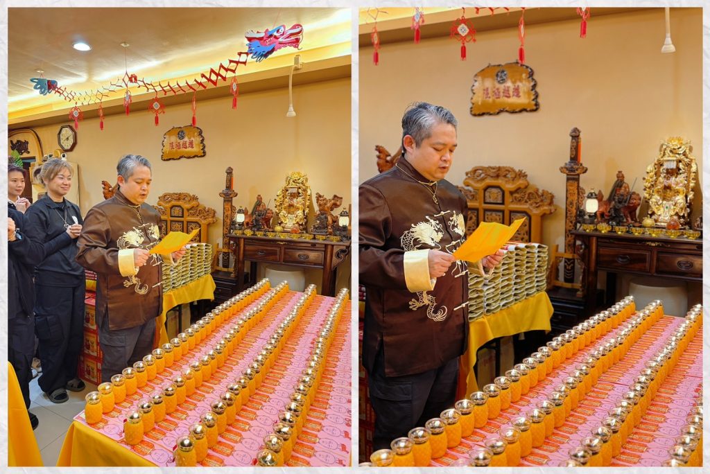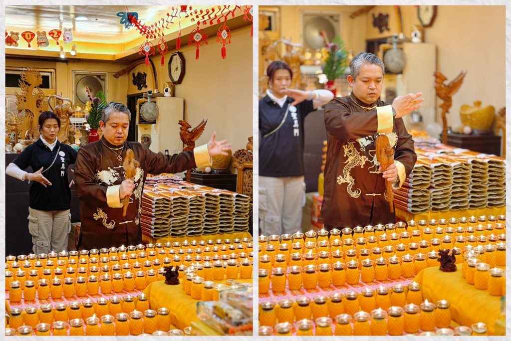 由聖真弟子幫每位參加者依序執行『制解除煞儀式』除去凶煞等諸不吉祥關煞,並且一一擲筊確認是否圓滿。
