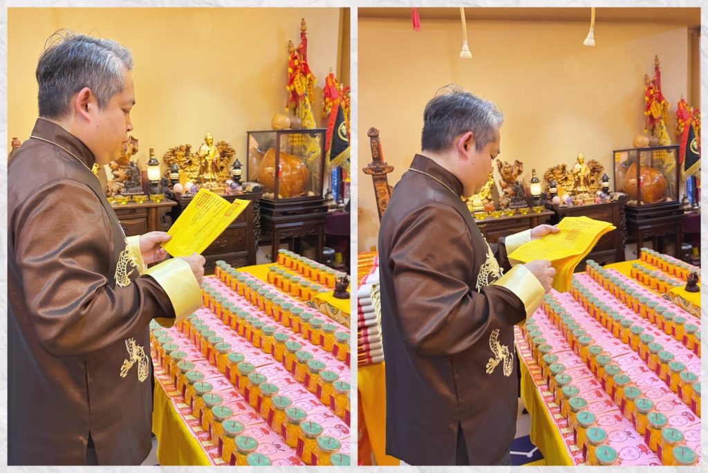 今日誦念經典,功德一併迴向參與法壇之善信,祈望諸佛仙聖消災解厄,賜福降祥。祈求開恩赦罪,釋放天羅地網之縛,消除百病之苦,化去千災之厄。