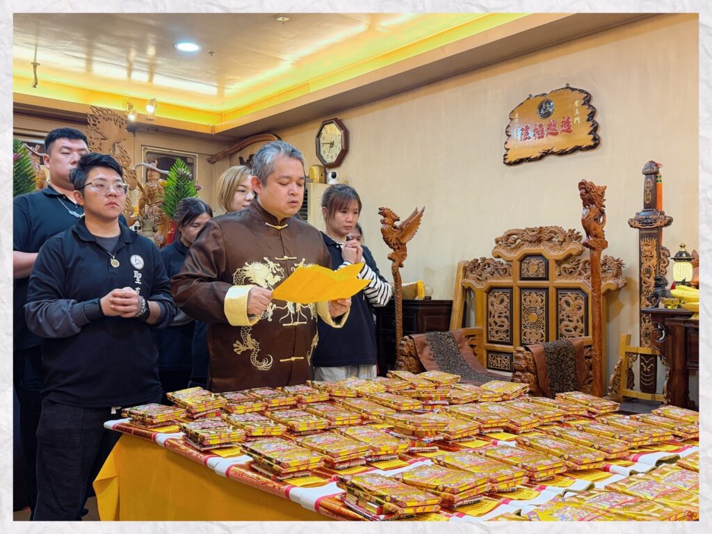 聖真門對於每場法會皆秉持嚴謹態度,確保每個環節都細心處理,絕不馬虎。在求財法會中,將恭誦濟公師父所指定的《六字大明咒》——這是象徵觀世音菩薩慈悲願力的咒語,寓意隨心滿願,助眾生祈求圓滿財運。