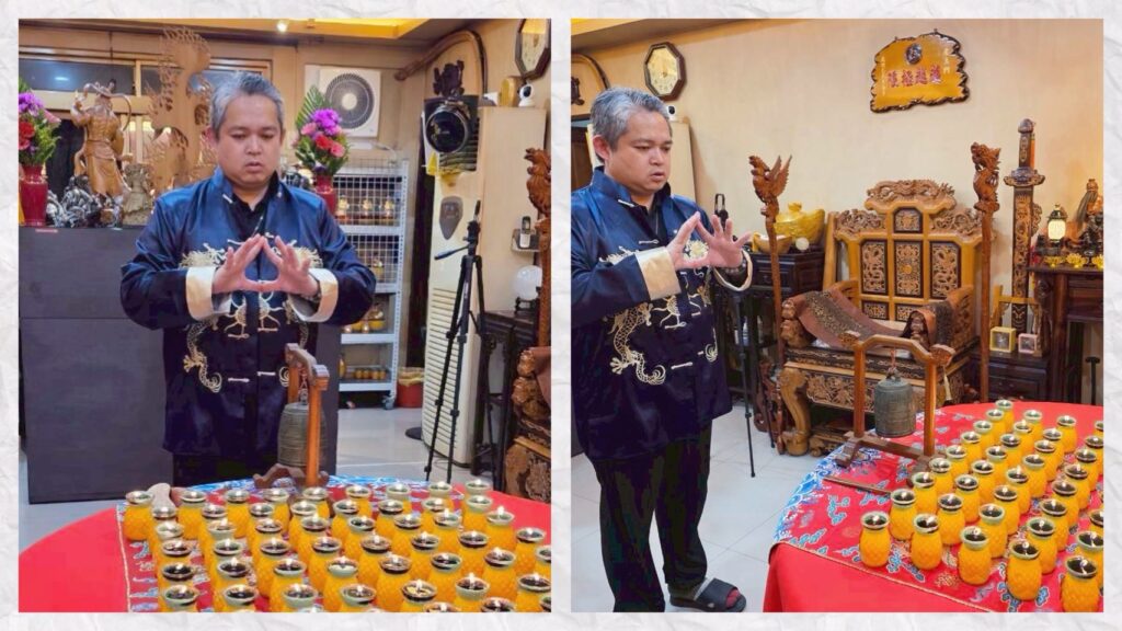 除夕當日晚上,初一子時,以108鐘聲上達天聽,祈求神佑,統一填稟疏文上呈,看看聖元師父如何替大家準備祈福儀式,祝福各位朋友能夠無陰無煞,能量飽滿,元辰光彩迎接嶄新的一年。