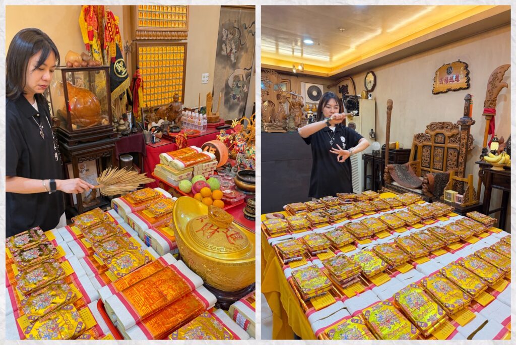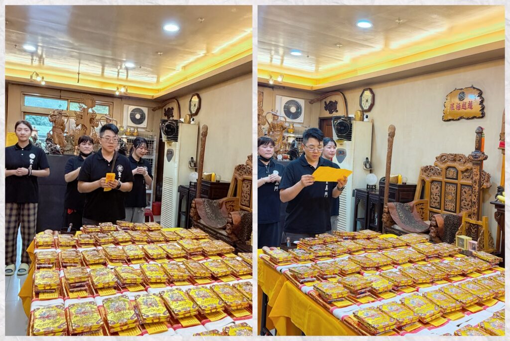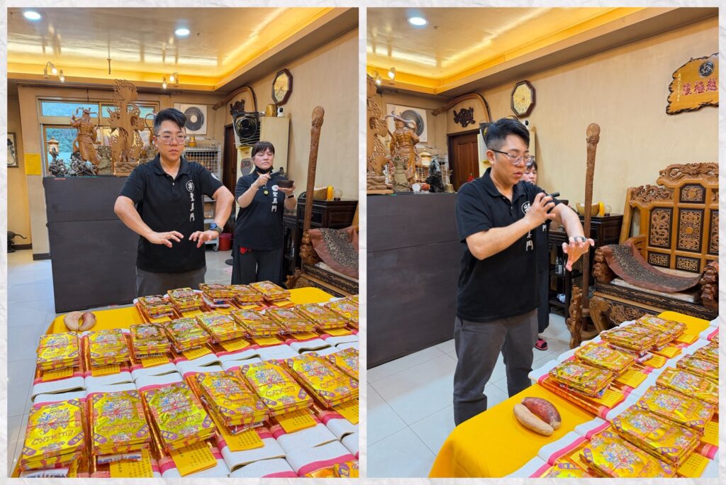 由聖真弟子道玄祈請濟公師父加持,為參加法會的朋友們退開不好的煞氣並填補破洞,再來加持財氣滿滿。🔻